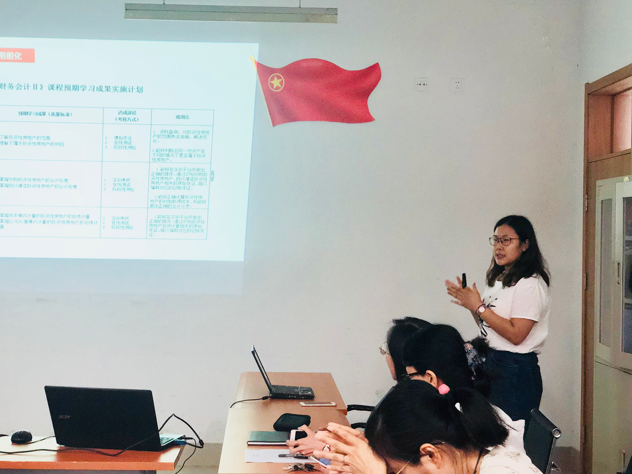 为更好的迎接教育部新建本科院校合格评估,进一步加强教师尤其是青年教师教学能力建设,提高教师业务素质和教学水平,7月20日会计学院在文外楼305举行2018-2019学年第一学期教学说课活动,审计学(数据式审计)、财务管理(财务信息化方向)、会计(互联网财税运营与管理方向)等校企合作办学专业课程主讲教师团队,及会计学院院长白洁、党总支书记石瑞宝、副院长崔伟、副院长魏巍、党总支副书记倪国锋、全体专业教师参加了本次说课。