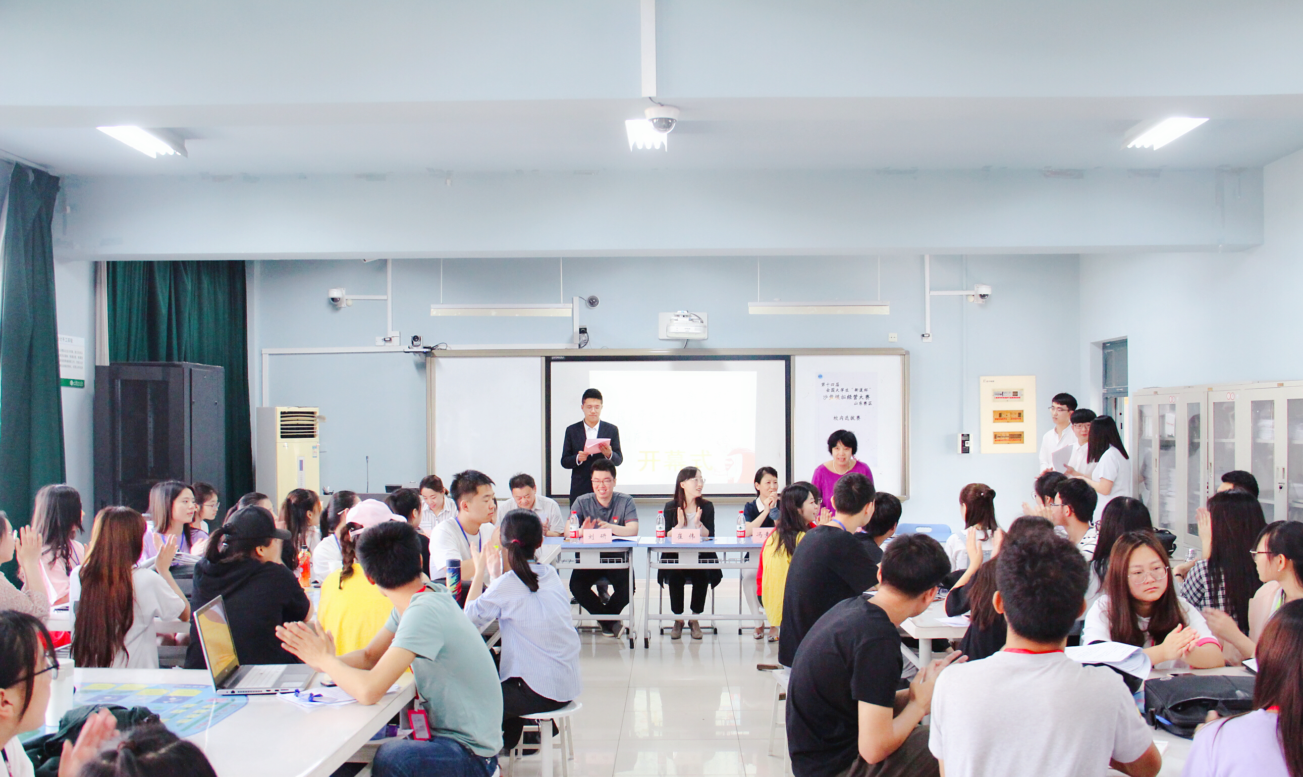 最后,她预祝本次大赛取得圆满成功,并宣布山东青年政治院第七届沙盘模拟经营大赛开幕。