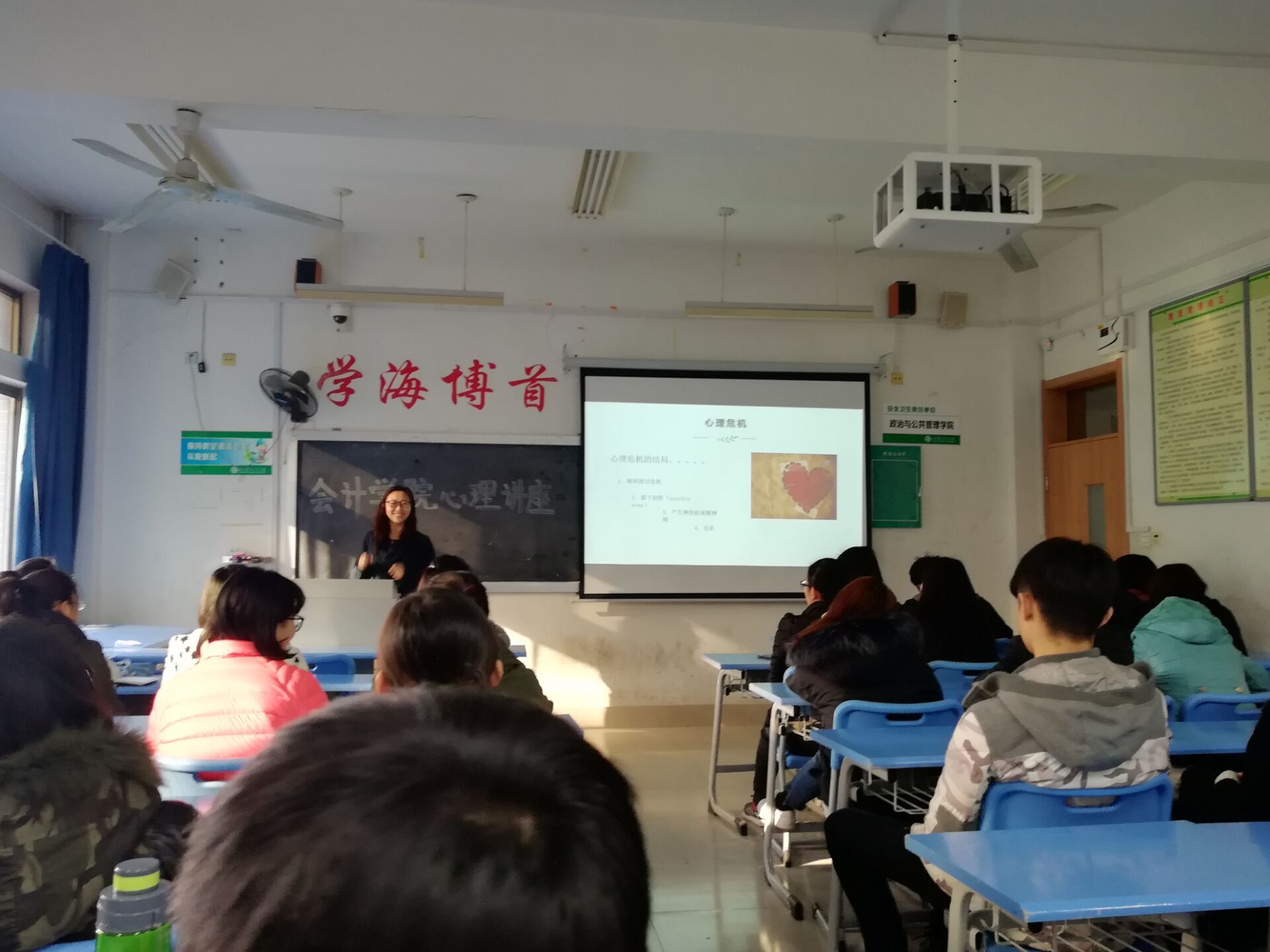 为充分发挥班级心理委员在大学生心理健康教育工作中的作用,进一步加强心理委员队伍建设,12月7日下午,会计学院于文外楼310举办了以“大学生心理危机干预”为主题的心理健康讲座,本次讲座由温永慧工作室成员、会计学院辅导员王雯雯老师担任主讲,会计学院全体心理委员及学生会心理健康服务部成员参加此次讲座。