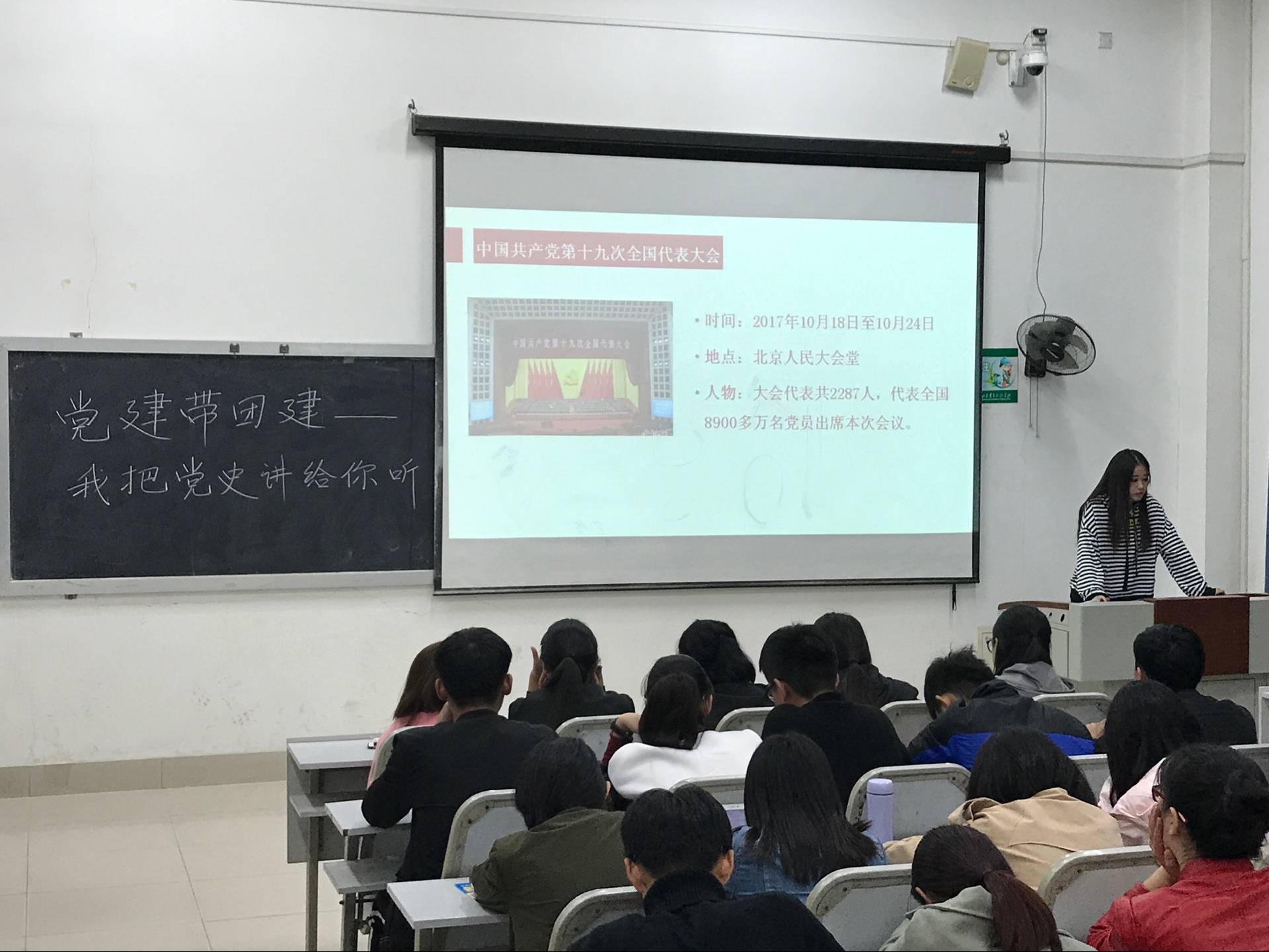 为深入学习宣传贯彻党的十九大精神,教育引导大学生进一步坚定理想信念,会计学院积极开展“党建带团建—党的十九大精神进团支部进班级”主题活动。