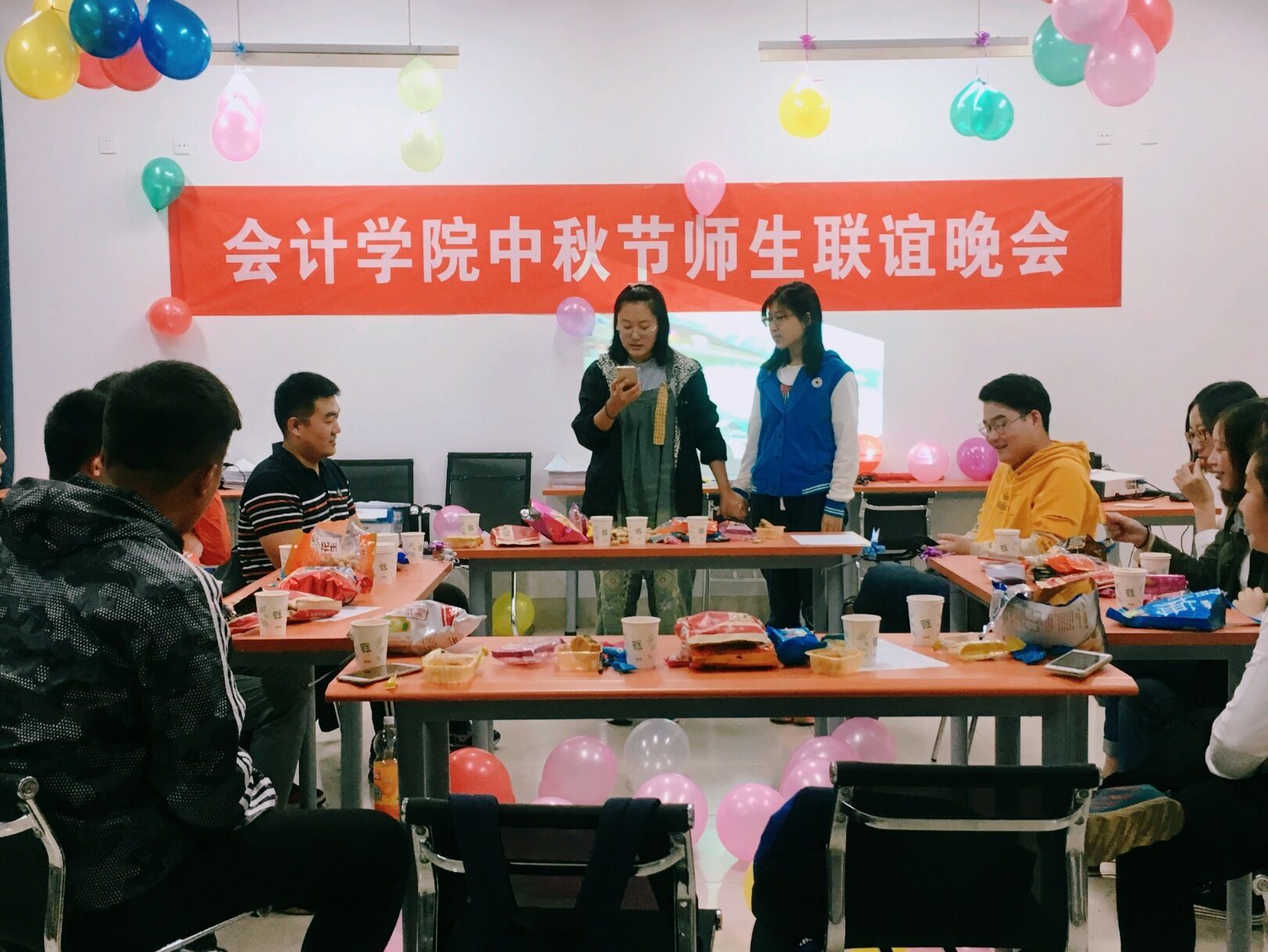 月到中秋分外明。中秋佳节来临之际,为做好留校学生的慰问服务工作,会计学院于10月4日晚在文外楼305举办中秋节师生联谊晚会。学院团总支任正实老师与同学们一起共度中秋,保证留校同学都能够度过一个快乐难忘的中秋节。