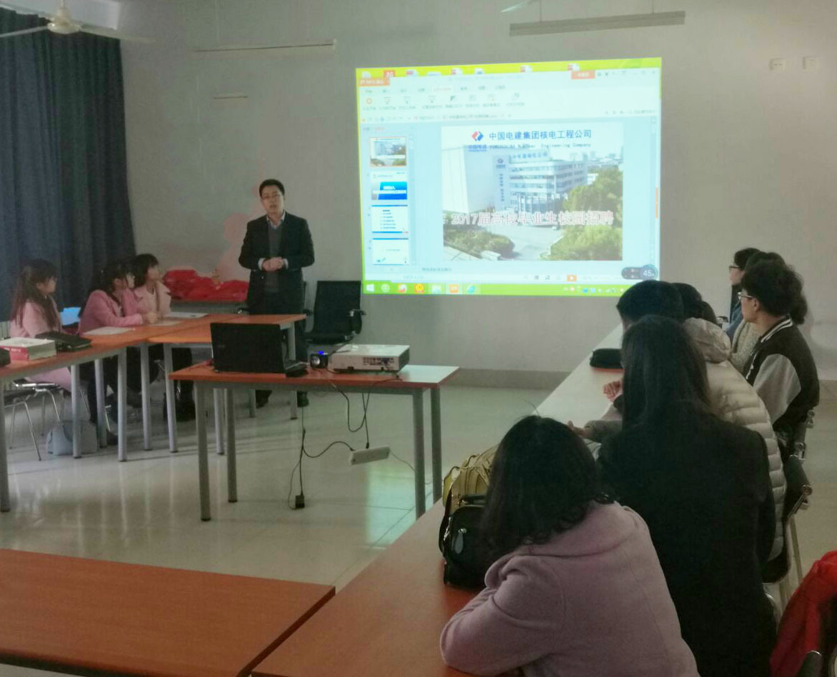 毕业不失业,是广大毕业生的共同心声。为了进一步推进学院毕业生就业工作,提高就业指导实效度,提升就业服务满意度,使2017届毕业生尽快熟悉职场、了解职场,更快地实现从“求职者”到“就业者”的转变,3月17日下午,会计学院举办2017届毕业生校园招聘报告会,邀请了中国电建集团核电工程公司针对我院财会类、审计类毕业生进行就业宣讲和人才招聘。