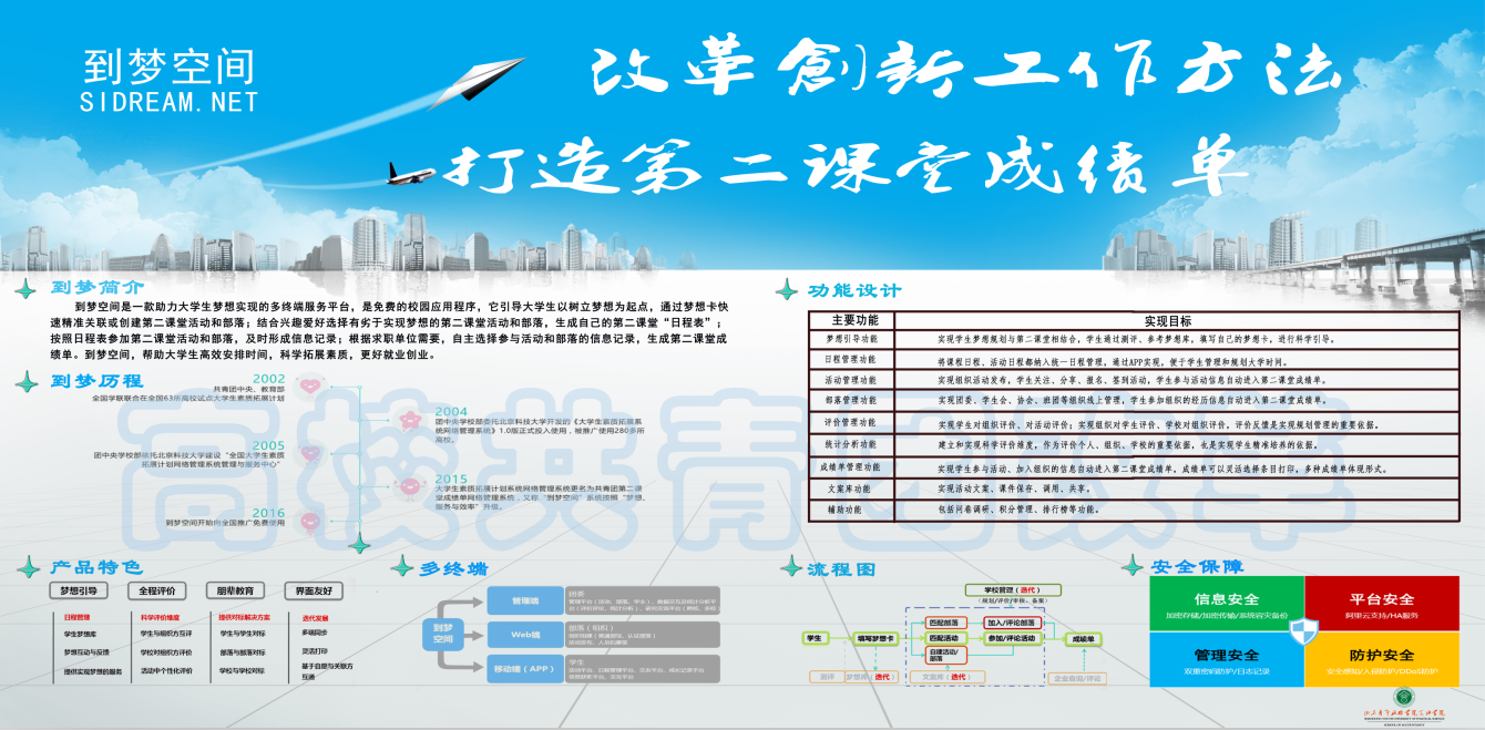 “第二课堂成绩单”针对就业创业、创新创造实践、身体心理情感、志愿公益和社会参与等普遍需求,从工作内容、项目供给、评价机制等方面进行系统设计和整合拓展,通过与学校相关部门、政府有关职能部门以及社会机构合作,借鉴“第一课堂”做法,运用“到梦空间”APP客观记录、认证学生参与“第二课堂”活动的经历和成果,生成“第二课堂成绩单”,使其成为学校人才培养评估、学生综合素质评价、社会单位选人用人的重要依据。