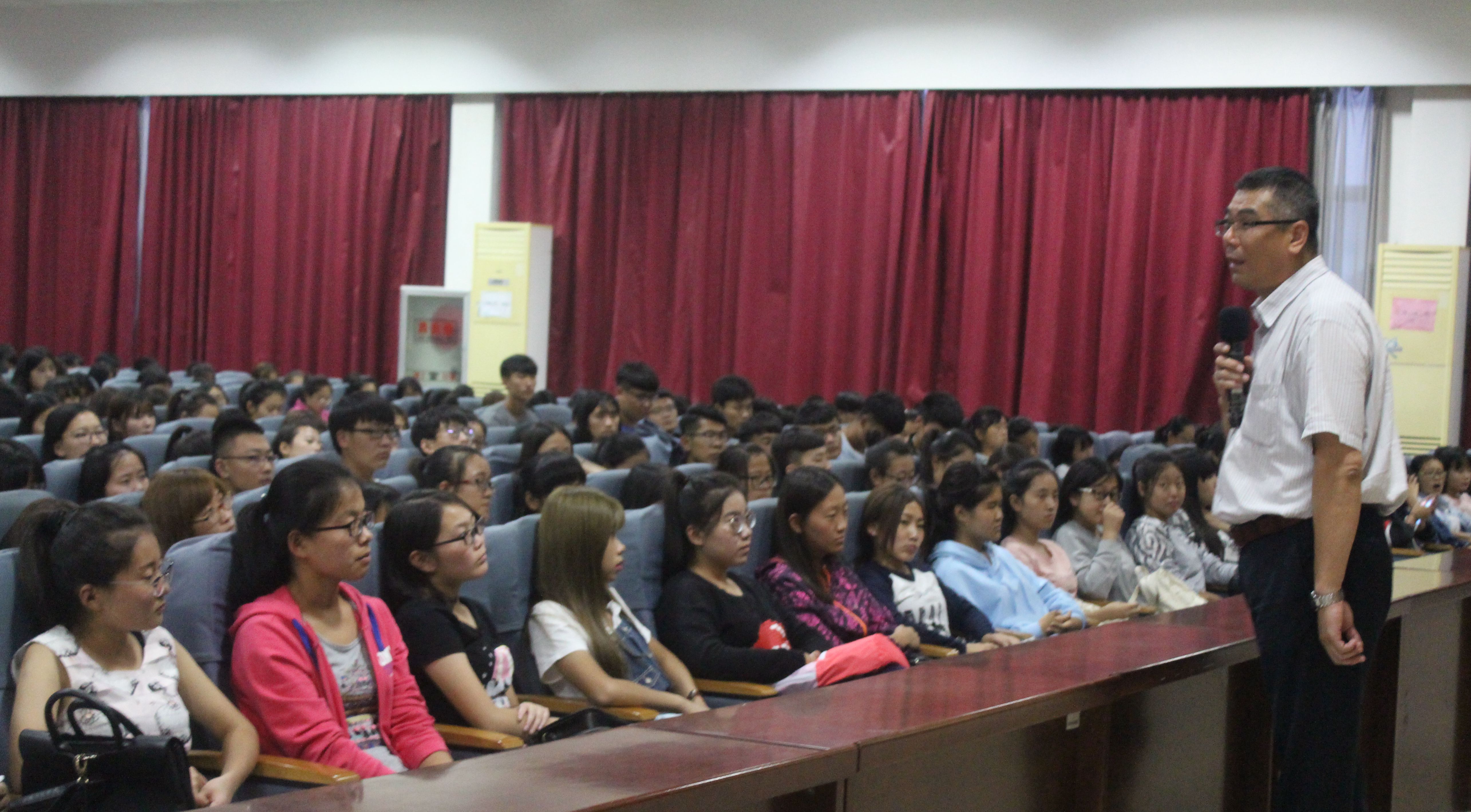 为使2016级新生更好地适应大学新生活,及时确立目标,明确适合自己的职业生涯发展路线,会计学院院长许维祥分别于9月20日、24日在大学生活动中心为新生开展大学生学业、职业规划讲座,会计学院团总支任正实、张月阳以及1000多名新生听取了讲座。