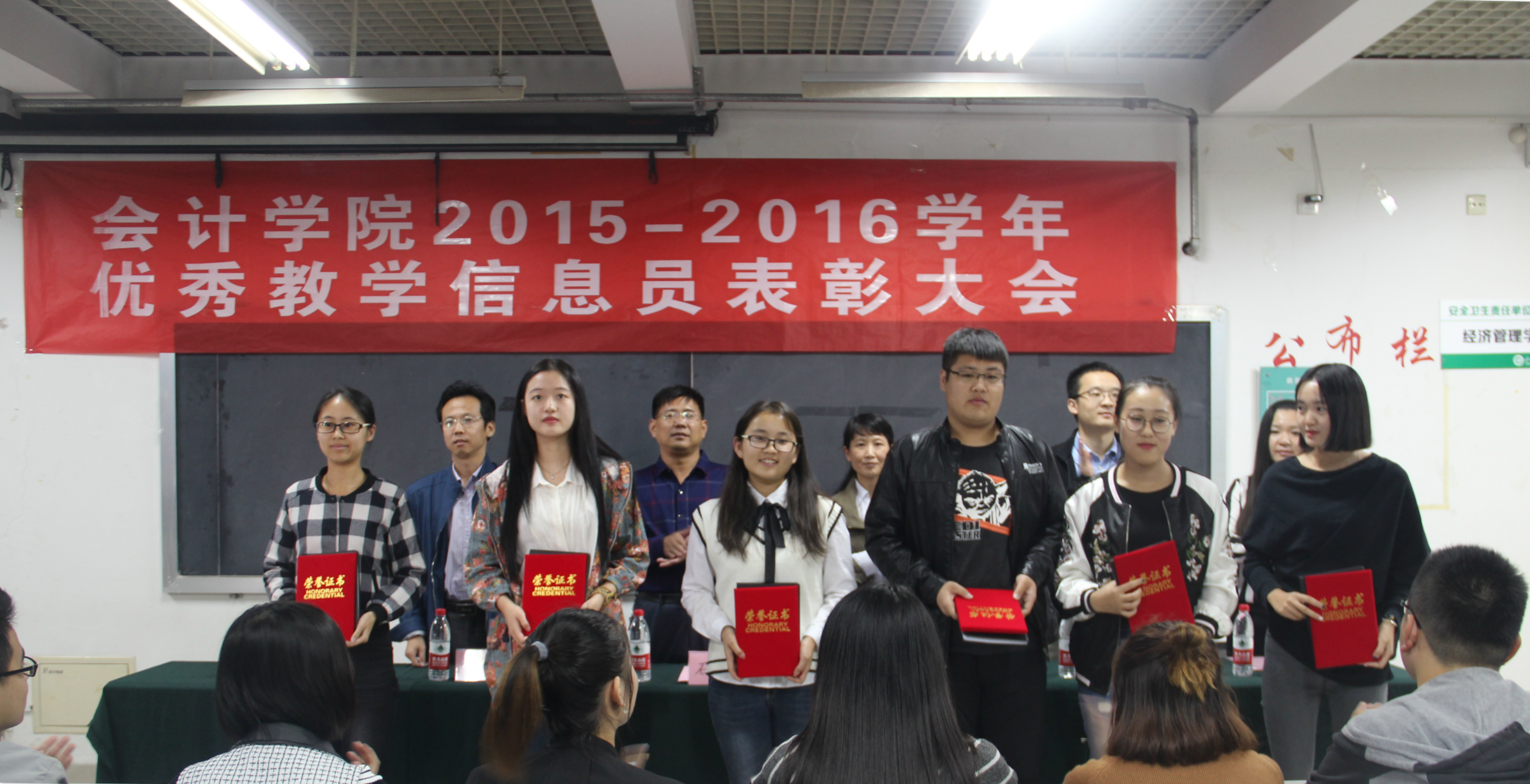 10月8日下午,我院在文外楼307教室召开教学信息员会议,对2015-2016学年表现优秀的15名学生教学信息员进行隆重表彰。党总支副书记石瑞宝、办公室主任倪国锋、教学科研管理办公室主任冯素珍和团总支张月阳、全体教学信息员以及近150名学生代表参加了会议。会议由教学科研管理办公室张晓媛主持。