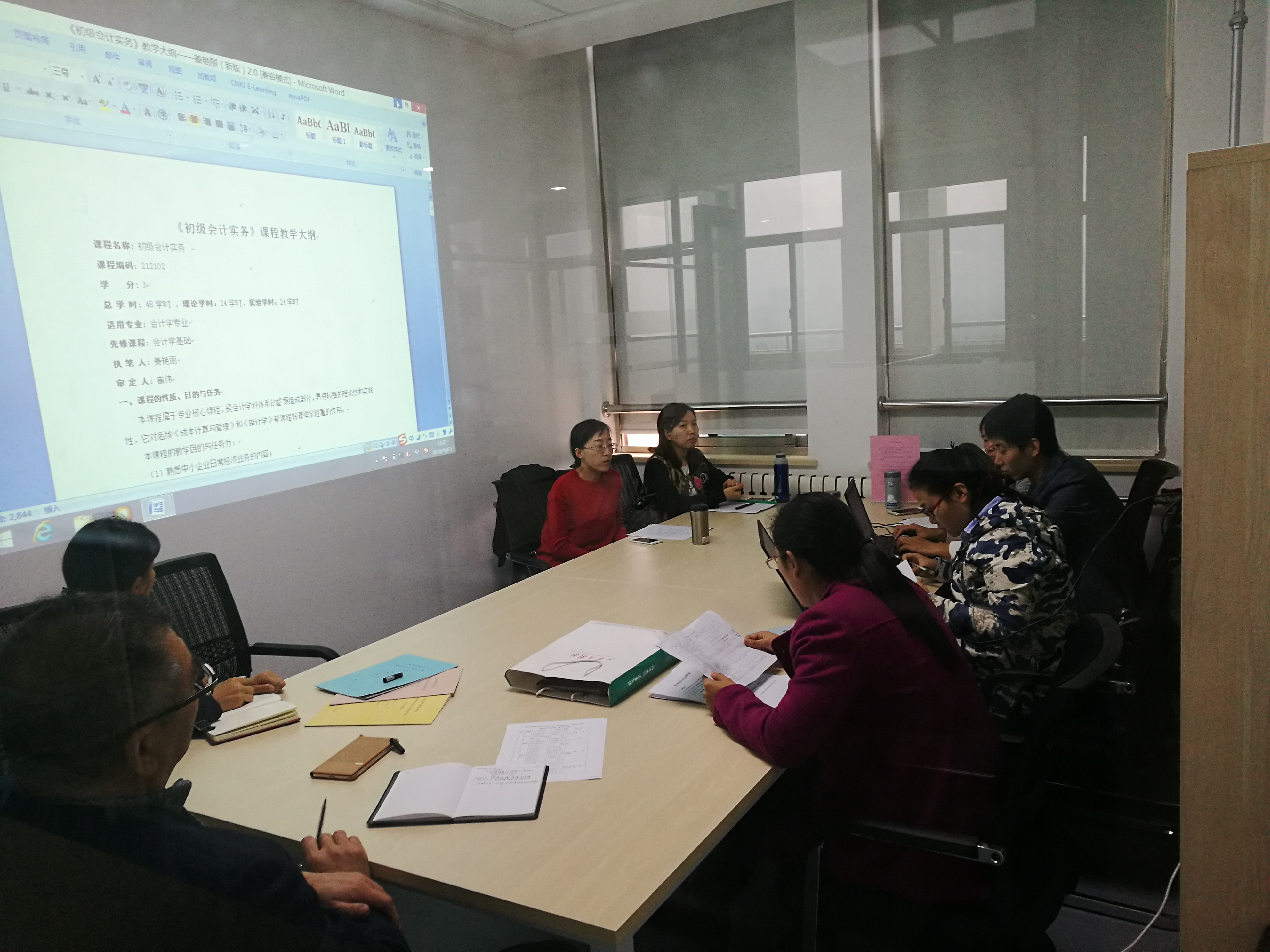 本次研讨围绕财务会计课程群组内的《中级财务会计Ⅰ》《中级财务会计Ⅱ》《高级财务会计》《初级会计实务》《中级会计实务》等课程展开。课程组负责人赵志红老师,根据各专业人才培养目标及培养规格要求,分析了相关课程的教学目标,各课程教学内容选择,及课程间教学内容的衔接关系等内容;课程教学大纲的具体撰写者就各课程教学目标、教学任务、教学要求等大纲撰写中的具体表述进行了进一步的阐述。
