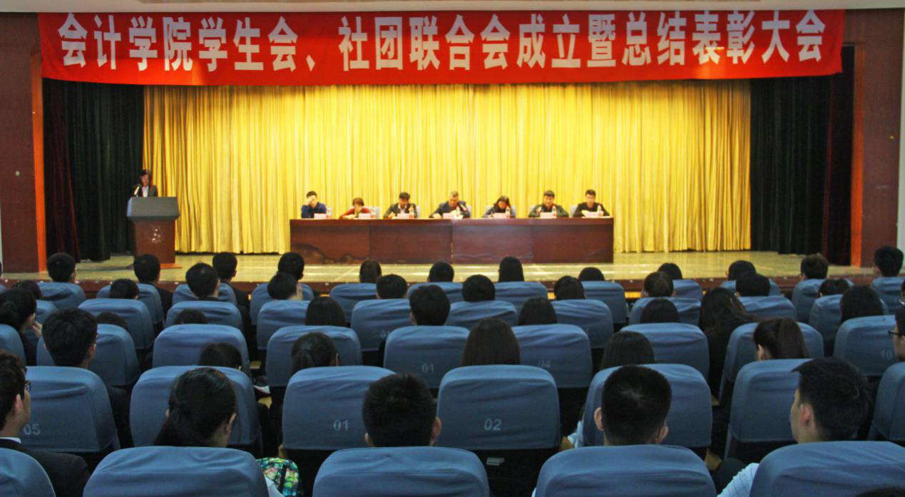 10月26日,会计学院于大学生活动中心召开新一届学生会、社团联合会成立暨总结表彰大会。学院领导许维祥、石瑞宝、白洁,团总支、学工办负责老师以及新一届学生会、社团联合会全体成员参加会议。