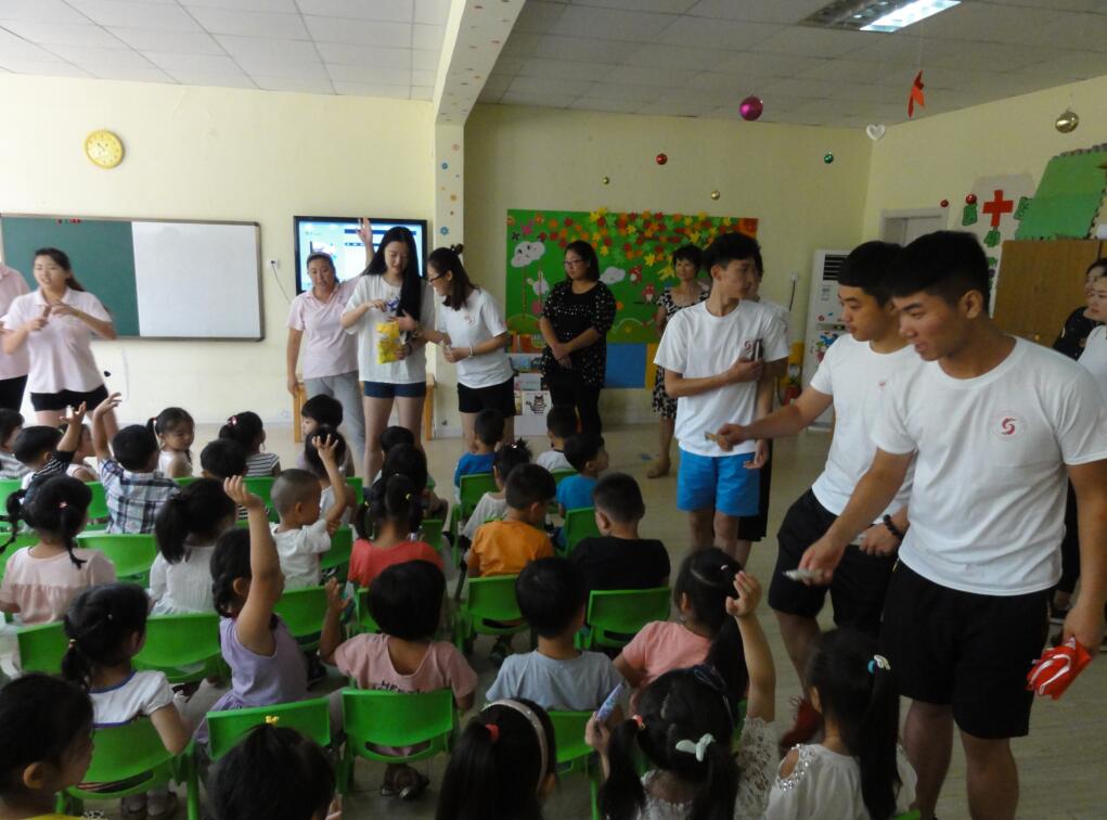 实践活动期间,实践团队的成员配合交警大队在幼儿园开展以安全教育和文明行为养成教育为主题的的班会,讲解安全常识及自我防范意识。在宣讲中,还举办了丰富多彩的游戏互动,让孩子们还游戏中意识到安全的重要性,学习掌握面对突发问题的应对措施,寓教于乐。
