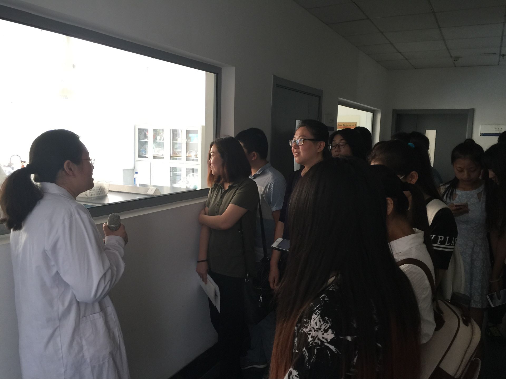 在山东省产品质量监督检验研究院市场业务部及研发中心相关领导的带领下参观了食品化工检测中心、包装及材料安全检测中心、建材家居产品检测中心、电器安全能效检测中心等部门的实验室。研发中心周博士向同学们介绍了各实验室的功能和作用,详细解释了如何通过技术创新进一步实现节能减排的目标,以核心科技提升企业竞争力。最后同学们与各实验室及研发中心的相关领导就用人需求、各部门日常工作流程及当下的食品卫生安全进行了学习与交流。