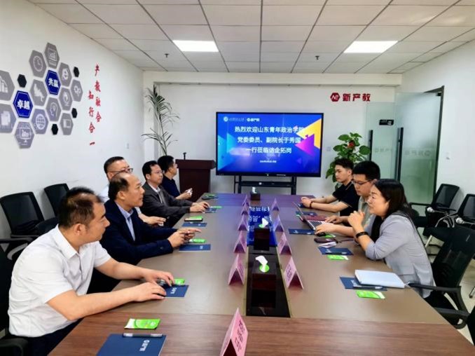 在山东新产教信息科技有限公司,王智勇向企业介绍了学院的人才培养及教学科研等方面情况,双方表示希望通过此次交流能够在人才培养、资源共享、平台共建等方面达成深入合作。山东新产教信息科技有限公司总经理于美玲详细介绍了公司的发展规模、人才需求以及公司主流业务情况。