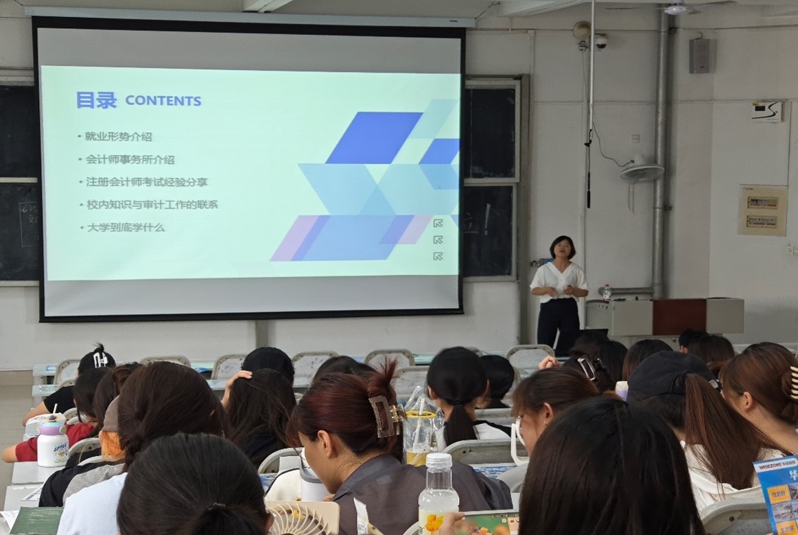 为了让学生更好地理解审计学的实际应用价值,王园杰还详细讲解了校内理论知识与审计职场实践之间的联系。她强调,理论知识是审计工作的基础,而实践经验则是将理论知识转化为实际能力的关键。因此,她鼓励学生不仅要学好课本知识,还要积极参与实践活动,提高自己的综合素质和职业能力。