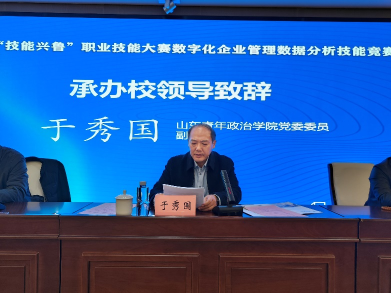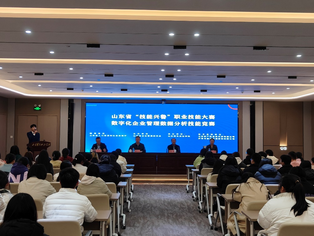 12月12日,山东省“技能兴鲁”职业技能大赛—数字化企业管理数据分析技能竞赛开幕式在我校举行。山东省政协常委、山东省企业管理研究会执行会长孙录宝,学校党委委员、副院长于秀国,会计学院院长王智勇,山东新产教信息科技有限公司总经理于美玲出席开幕式,部分参赛教师、学生代表参加开幕式。