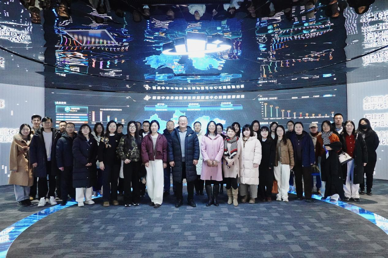 为深入推进“双师型”教师队伍建设,充分了解我省中小企业数字化转型需求,切实提升教师服务地方经济社会发展能力。近日,由经济管理学院院长席岩和会计学院院长王智勇带队,两院骨干教师共同前往国家级中小企业数字化转型促进中心(以下简称“数促中心”)参观调研。