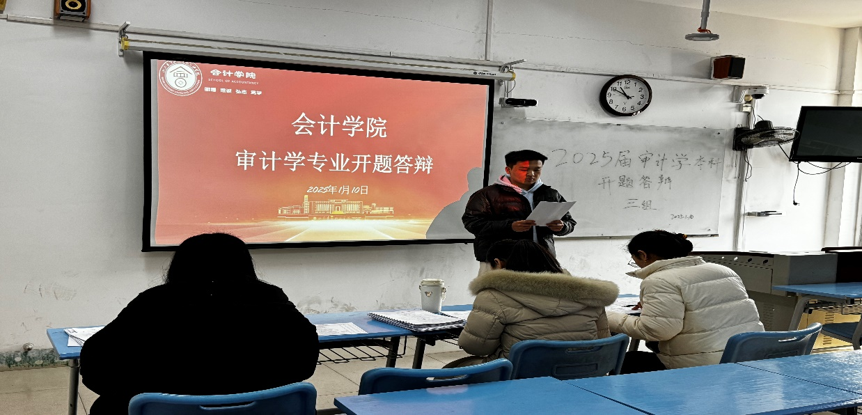 为全面提升学生培养质量,强化过程管理培养理念,2025年1月10日,审计学专业组织开展了2025届本科生毕业论文开题答辩工作。本次答辩共有218名学生参加,18位指导教师分成6组,线上线下同步进行。开题答辩严格按照毕业论文相关程序进行,同学们围绕研究背景、研究思路、研究方法、研究内容、研究进度安排等方面进行全面阐述,答辩组老师从选题的可行性、研究思路的科学性、研究意义和研究方法的可操作性、开题报告的规范化等内容进行了深入的分析和指导,同时针对存在的问题提出了具体建议,为同学们进一步完善开题报告提供了宝贵的参考意见。通过本次毕业论文开题答辩,进一步促进了审计学专业毕业论文管理的规范性,促进了学生对毕业论文的认识和重视,达到了预期效果,为后续论文工作的开展提供了重要前期基础。