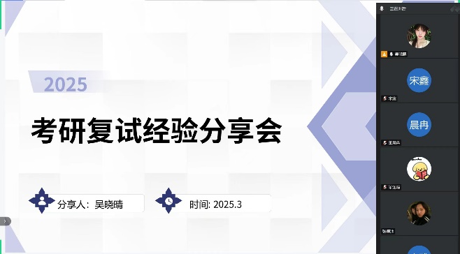 研途相伴,筑梦领航。为助力考研学子精准把握复试核心要点,科学系统规划备考路径,学院举办考研复试经验分享会。活动邀请中国地质大学方心雨、山东财经大学吴晓晴两位2024届优秀校友担任主讲,聚焦复试全流程,为即将参加考研复试的同学们提供实战经验分享,并鼓励初试成绩稍显落后的同学保持信心。方心雨详细讲解了个人简历制作、专业知识准备与英语口语表达技巧;吴晓晴则深入解读了复试环节的备战策略以及面试流程,提醒同学们要调整心态,保持自信。