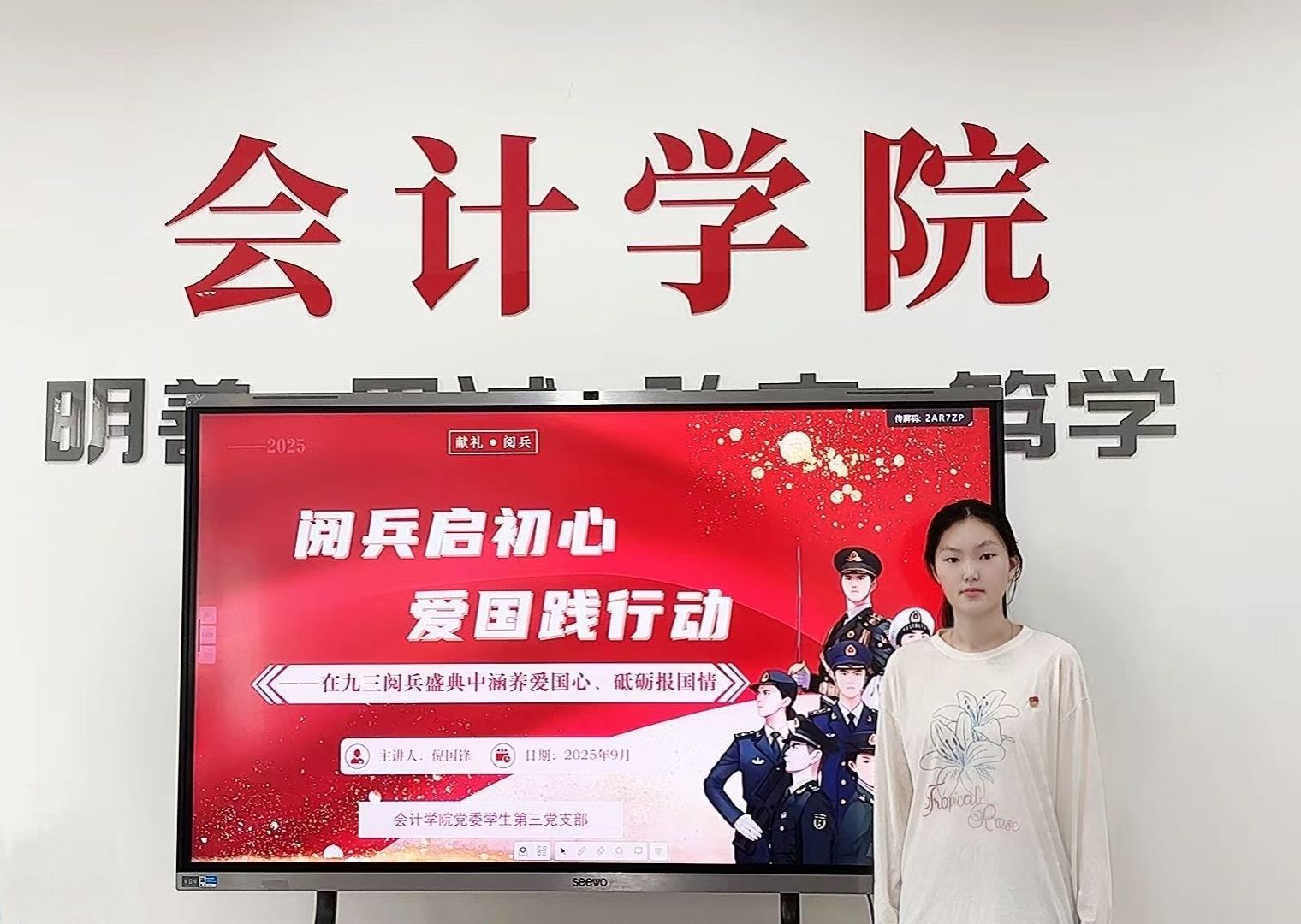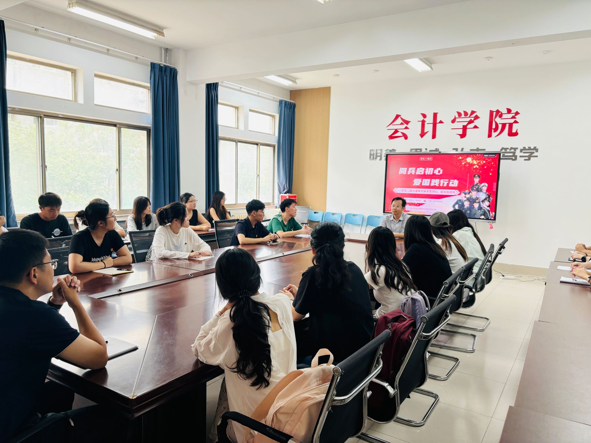 为增强学生民族自豪感和国家荣誉感,帮助学生深刻理解伟大抗战精神的历史意义和时代价值,9月11日上午,会计学院党委副书记倪国锋以“阅兵启初心,爱国践行动”为题,为会计学院党委学生第三党支部全体学生党员讲授2025年秋季学期开学第一课。