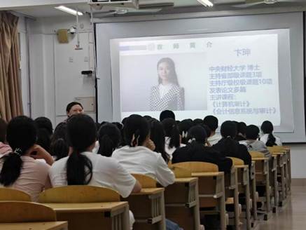讲座以互动提问巧妙开篇,通过即时解答新生对注册会计师行业的困惑,迅速打破陌生感、点燃现场氛围。在轻松活跃的氛围中,赵老师自然过渡到核心内容——她以详实的行业数据为支撑,辅以生动鲜活的案例分析,层层深入地剖析了当前注册会计师行业的就业生态,让抽象的行业现状变得具体可感。她详细介绍了会计师事务所、金融机构、大型企业、政府及非营利组织等不同领域对审计人才的具体需求、岗位设置及能力要求,为同学们勾勒出一幅清晰的审计职业路径图。更令人印象深刻的是,赵老师结合自身经历,分享了审计工作中如何坚守原则、破解难题的真实故事,并勉励新生:“注册会计师不仅是职业,更是责任,未来需以专业严谨态度、扎实能力与诚信品格,扛起审计担当,成长为行业新星。”