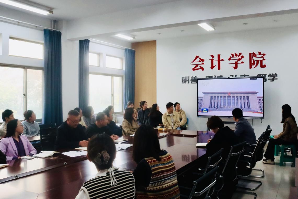 10月30日,会计学院召开教职工大会,专题学习党的二十届四中全会精神,学院党委书记姜宏宝主持会议,全体教职工参加学习。