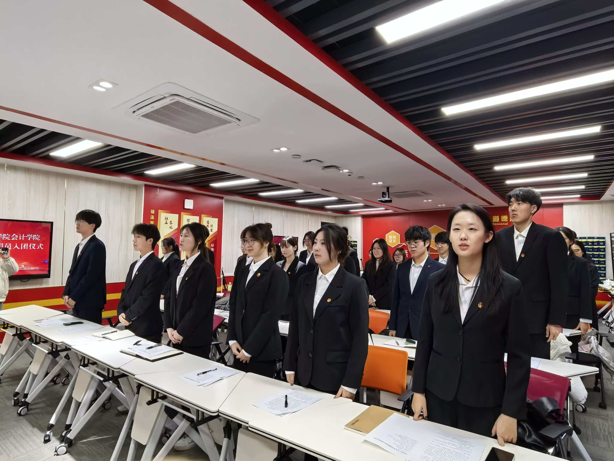 为进一步加强基层团组织建设,引导青年学子坚定理想信念、勇担时代使命,12月18日,会计学院在知行楼508举行2025年下半年新发展团员入团仪式。会计学院党委副书记倪国锋、全体辅导员老师及优秀团员代表和全体新团员参加仪式,共同见证这一庄严而光荣的时刻。仪式由团总支书记马春晓主持。