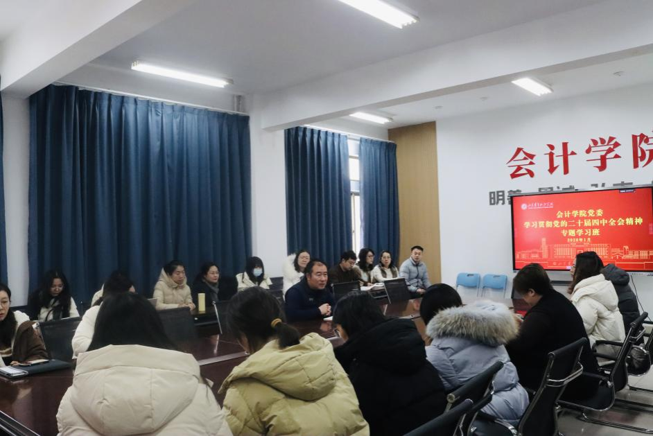 大家一致表示,将以此次专题学习为契机,持续深入学习贯彻党的二十届四中全会精神,切实把学习成果转化为推动学院发展的具体行动和实际成效,为学校事业高质量发展贡献会计学院力量。