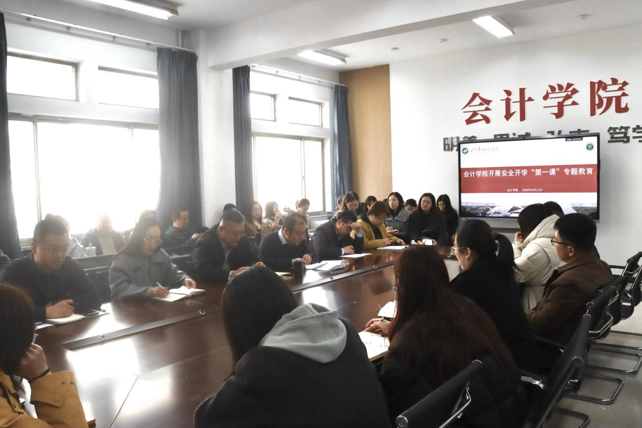 为深入贯彻落实省教育厅《关于扎实开展安全开学“第一课”活动加强校园安全防范工作的通知》精神及学校安全工作部署,进一步强化师生安全防范意识,切实加强校园安全管理,3月12日,会计学院组织开展安全开学“第一课”专题教育活动。活动由学院党委书记姜宏宝主持,学院全体教师参加。