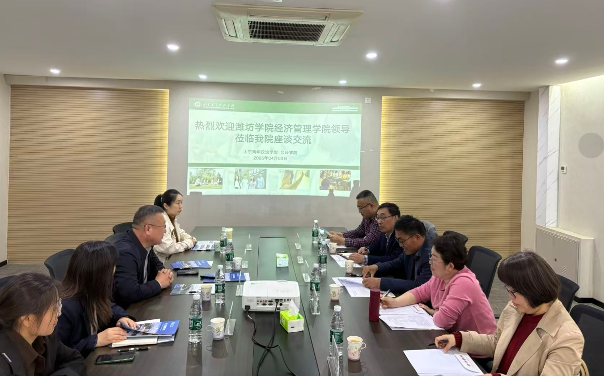 4月3日,潍坊学院经济管理学院院长刘伟一行来我院考察交流。双方围绕学科专业建设、人才培养体系优化等方面开展专题研讨,共商深化合作与人才培养大计。会计学院院长王智勇及教师代表参加座谈。
