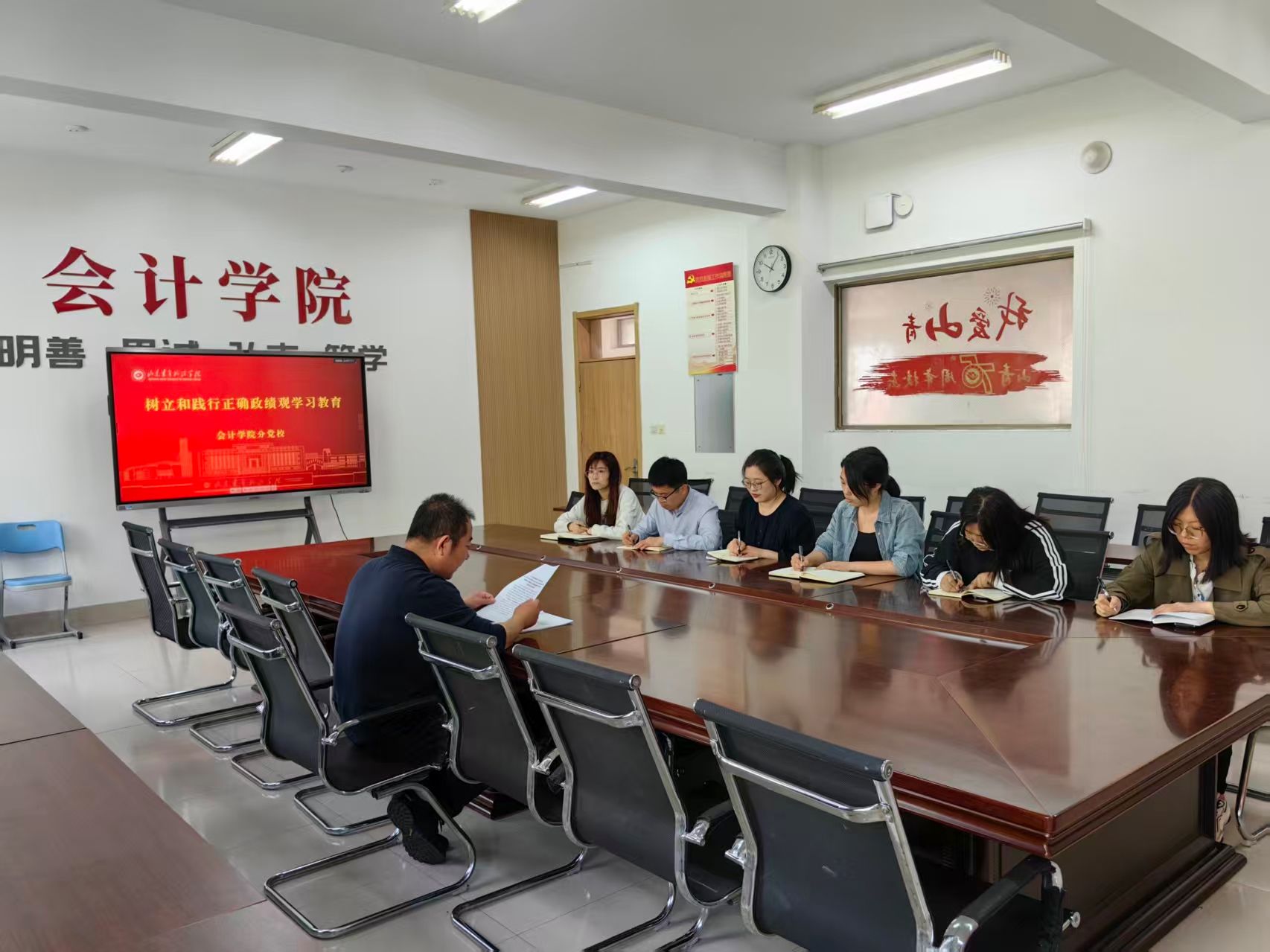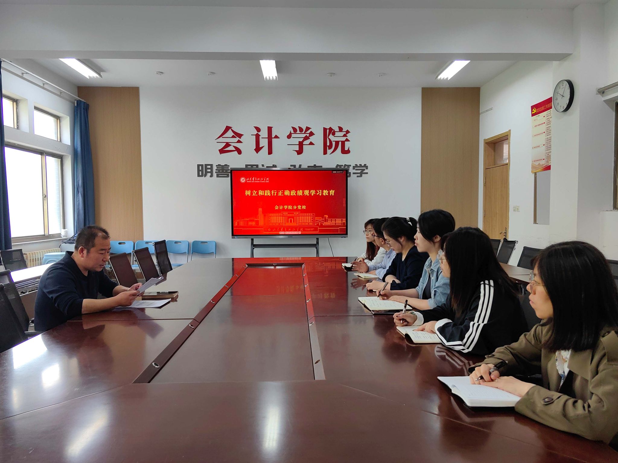 为深入学习贯彻习近平总书记关于树立和践行正确政绩观的重要论述精神,全面落实学校党委的工作部署,筑牢党员干部思想根基,4月15日,会计学院分党校召开树立和践行正确政绩观学习教育专题会议。会计学院党委书记姜宏宝、全体科级干部参加会议。